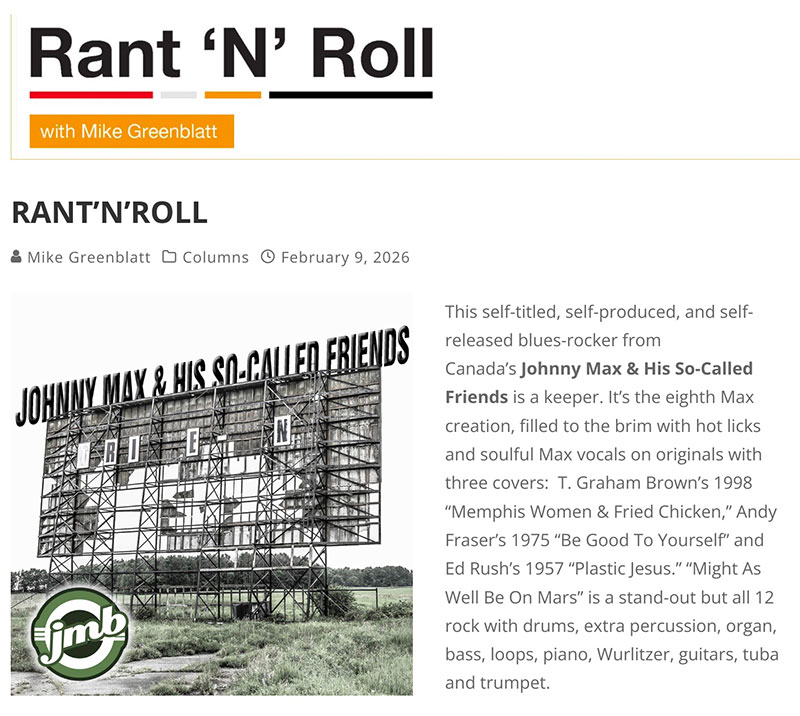 Johnny Max & His So-Called Friends is blues-based but not strictly blues, with the Nola vibe of a song like Kiss From Joanne feeling like it would be right at home during Mardi Gras. There’s some good old-time rock & roll here too, and I think it’s safe to say the disc is sort of all over the place stylistically and gloriously so. This is the sound of friends having a fine time.
